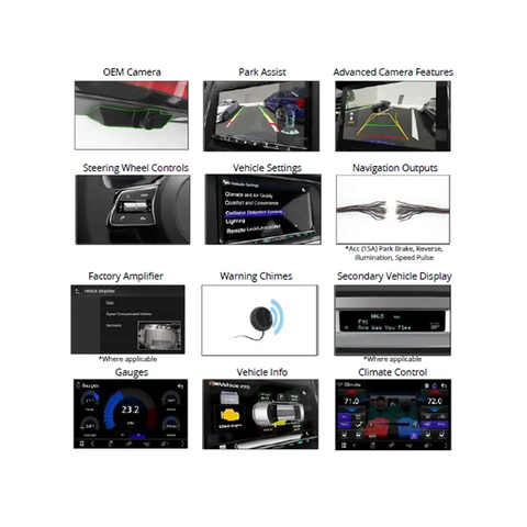 Compatible with both the Automotive Data Solutions iDatalink Maestro RR and RR2 (sold separately)* for enhanced system vehicle integration. In addition to providing the seamless factory integration experience you have become accustomed to with the RR, these models feature expanded support when connected to the RR2, including an Advanced Driver Assistance Systems (ADAS) Widget and Customizable Accessory Controls.
