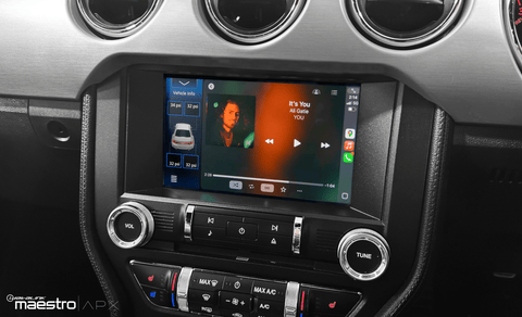 The DAX8000XDS with iDatalink Maestro integration Ford Mustang Kit is designed specifically for the Ford Mustang. This premium upgrade retains all of your original vehicle functions while adding Apple CarPlay, Android Auto, gauges, and superior audio — all without compromising the factory look of your dash.